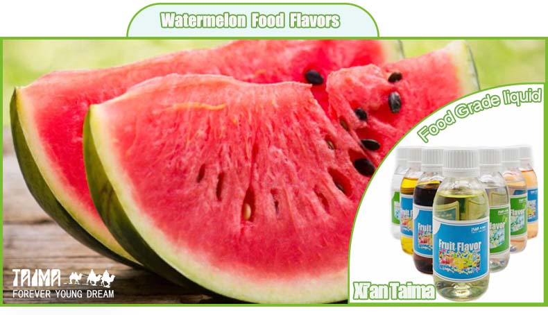 Food Watermelon Flavour is used in Carbonated beverages, fruit juices, functional waters, cocktails, fruit wines, ice cream, ice lollies, chewing gum, yogurt, milkshakes, candies, tablet candies, cakes, cookies, bread, jam, jelly, pudding, salad dressings, toothpaste, mouthwash, e-cigarette oil, fishing bait, etc